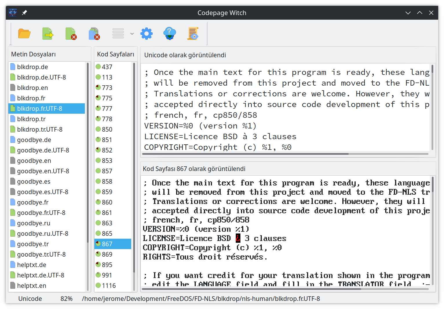 Codepage Witchfor Linux (x86-64)Preview - Utility for working with Codepage and UTF-8 encoded text files.